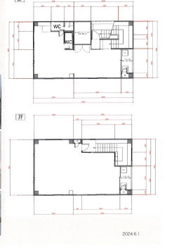 事務所内装 一括貸し 、6階56.08u+7階61.36u、看板料11000円、前テナントセラピー教室、メゾネットタイプ、(設備)、電気・水道・個別空調、エレベータ1基(4人用)、専用給湯・専用WC、、用途地域 商業地域、火災保険:要加入、保証会社:要加入、【賃料等は消費税込み】